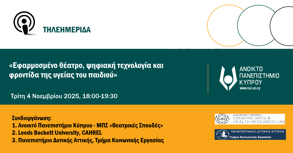 «Εφαρμοσμένο θέατρο, ψηφιακή τεχνολογία και φροντίδα της υγείας του παιδιού»